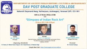 भारतीय इतिहास संस्कृति एवं पुरातत्व विभाग, डी ए वी पी जी कॉलेज द्वारा दिनाँक 12/03/2022 को “भारतीय शैल चित्रकला की झलक” नामक विषय पर विशिष्ट व्याख्यान प्रो. वी एच सोनवने द्वारा दिया गया जिसमें उन्होंने भारतीय शैल चित्रकला पर किये गए अपने विशिष्ट कार्य पर प्रकाश डाला । इस व्याख्यान में उन्होंने बताया कि शैल चित्रकला दक्षिण में केरल से उत्तर में लद्दाख के झन्स्कर घाटी और पश्चिम में गुजरात से पूर्व में मणिपुर तक के विस्तृत क्षेत्र में फ़ैले हुए हैं 1इसमे ब्रुज़िन्ग, एन्ग्रविन्ग और पेंटिंग तकनिकी का इस्तेमाल किया गया है और प्राकृतिक रंगों का इस्तेमाल किया गया है I ये चित्रकला ना केवल चट्टानों पर बल्कि शुतुरमुर्ग के अण्डों पर भी इस प्रकार की चित्रकला प्राप्त होती है, ये चित्रकला निम्न पुराप्रस्तर काल से ऐतिहासिक काल तक प्राप्त हुए हैं, इनसे हमें तत्कालीन समाज की झांकी देखने को मिलती है उद्घाटित किया । इस कार्यक्रम का संचालन डा मुकेश कुमार सिंह द्वारा किया गया तथा धन्यवाद ज्ञापन डॉ ओम प्रकाश कुमार द्वारा किया गया। इस अवसर पर विभाग के विभागाध्यक्ष डॉ प्रशांत कश्यप, डॉ सीमा और डॉ मनीषा सिंह उपस्थित रहे। इस कार्यक्रम में शिक्षकों , शोधार्थियों व छात्र-छात्राओं ने हिस्सा लिया एवं कई बिंदुओं पर प्रो सोनावने जी से चर्चा की।