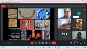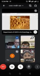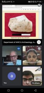 अपने व्याख्यान में प्रोफ़ेसर संतोष कुमार ने भारतीय पुरातत्व में विभिन्न संस्कृतियों विशेषतः पाषाणकालीन संदर्भ में काल निर्धारण व उनकी विशिष्ठताओं पर बड़े लोकप्रिय शैली में प्रकाश डाला। आपने बताया कि किस प्रकार हमारे पूर्वज गेहूँ व आटे से परिचित होकर भी बर्तन न होने के दौर में संभवतः काशी के लोकप्रिय व्यंजन बाटी की तरह खाद्य पदार्थ का उपयोग करते रहे होंगे। साथ ही जिज्ञासुओं की विभिन्न प्रकार की पुरातत्विक जिज्ञासाओं का भी समाधान किया। इस ऑनलाइन कार्यक्रम का संचालन विभाग के वरिष्ठ अध्यापक डॉ. मुकेश कुमार सिंह ने किया। स्वागत भाषण विभागाध्यक्ष डॉ. प्रशांत कश्यप ने दिया। कार्यक्रम के अंत मे डॉ. ओम प्रकाश कुमार ने महाविद्यालय के यशस्वी प्राचार्य डॉ. सत्य देव सिंह समेत कार्यक्रम में उपस्थित सभी लोगों का आभार व्यक्त किया। इस अवसर पर विभाग के अन्य सहयोगी अध्यापक डॉ. सीमा, डॉ. आशुतोष कुमार सिंह तथा डॉ. शशिकांत सिंह के साथ ही विभाग में अध्ययनरत छात्र-छात्राएं भी मौजूद रहे।