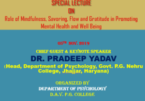 डी.ए.वी. पी.जी. कालेज के मनोविज्ञान विभाग में में हिलींग कार्यशाला का आयोजन का आयोजन किया गया जिसका विषय ’’ स्वास्थ्यए समृद्धि और प्रसन्नता ’’ था।