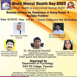 डीएवी पीजी कॉलेज के मनोविज्ञान विभाग और इंडियन एकेडमी आफ मेंटल हेल्थ के संयुक्त तत्वाधान में विश्व मानसिक स्वास्थ्य दिवस का आयोजन किया गया,