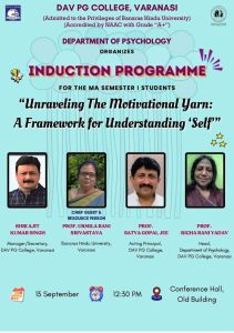 डी.ए.वी. पी.जी. कालेज के मनोविज्ञान विभाग में स्टूडेंट ओरियंटेशन प्रोग्राम का आयोजन किया गया। जिसका विषय ’’मनोवैज्ञानिक ज्ञान कौशल और करियर निर्माण’’ था। इस कार्यक्रम के मुख्य वक्ता डॉ. बी.सी.कर (साइंटिस्ट,